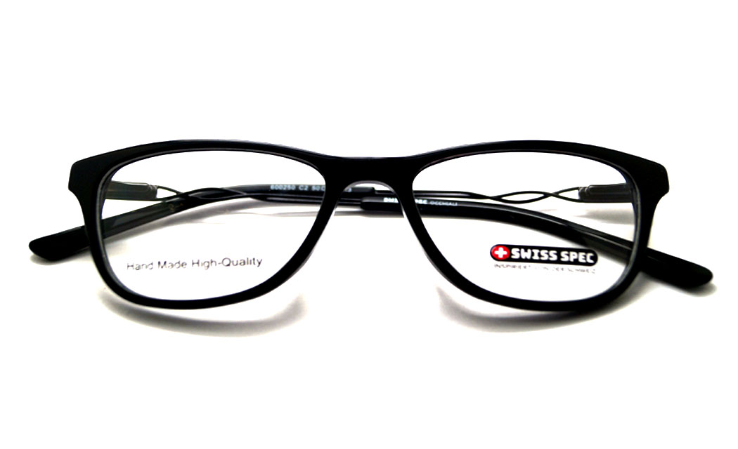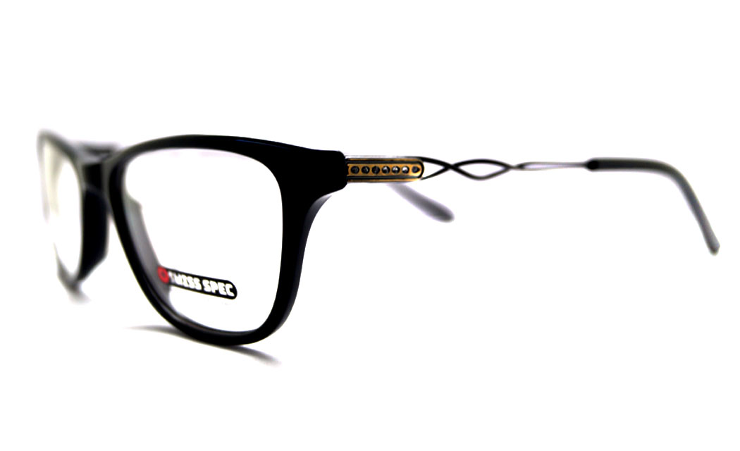 Rectangular shiny black rim highlight with designed metal & stone spring side.