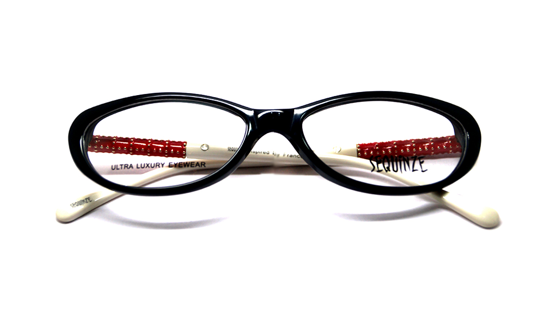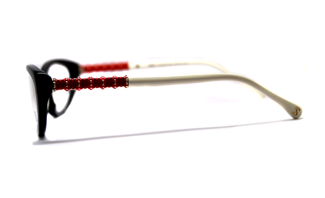 Cat eye shiny black rim highlight with red & off white tip.