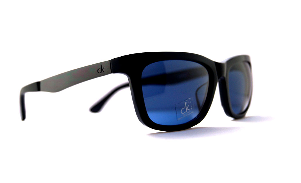 Square shiny black sunglasses with blue glass & stylish tip.