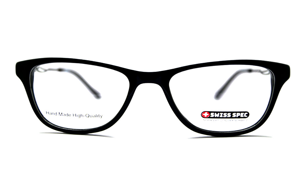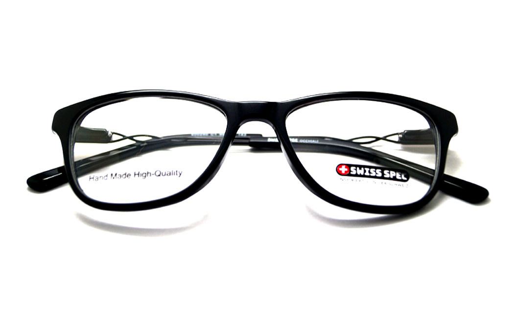 Rectangular shiny black rim highlight with designed metal & stone spring side.