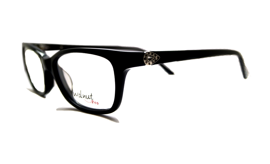 Rectangular shiny black full rim frame highlight with stone tip.